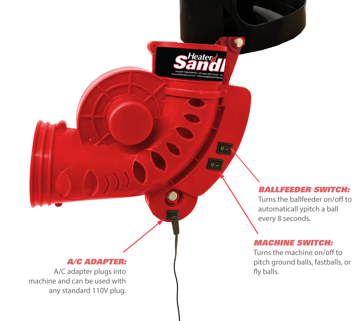 With a simple On/Off Switch, the Sandlot Polyester Baseball Pitching Machine is the easiest pitching machine to use. Plus, by moving the machine closer or further from the batter, you can simulate speeds from 15-50 MPH! The Automatic Ballfeeder will deliver 1 ball every 8 seconds so the batter can perfect their timing and prepare for strike after strike.